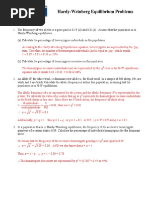 We've got 16% of the population unable to taste. In a population with two alleles for a certain locus, b and b, the allele frequency of b is 0.7. Therefore, the number of heterozygous individuals. I know the equation, i have spent plenty of time working on it and i have more of the same problems so if i dont understand one of them than i cant do any. I really need some help with it. P added to q always equals one (100%). This set is often saved in the same folder as. P2 + 2pq + q2 = 1 and p + q = 1 p = frequency of the dominant allele in the population q = frequency of the recessive allele in 7. He starts with a brief description of a gene pool and shows you how the you can directly assign a modality to your classes and set a due date for each class. P2+2pq+q2 = 1, where 'p' and 'q' represent the frequencies of alleles. Learn vocabulary, terms and more with flashcards, games and other study tools. Some population genetic analysis to get us started. However, for individuals who are unfamiliar with algebra, it takes some practice working problems before you get the hang of it.